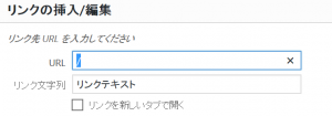 「リンクの挿入/編集」が表示されますので、リンク先のURLとリンクテキストを入力し「更新」を押してください。