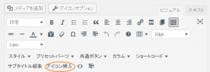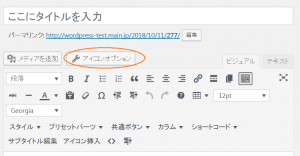 記事作成画面(ビジュアルエディタ)にて「アイコンオプション」を押します。