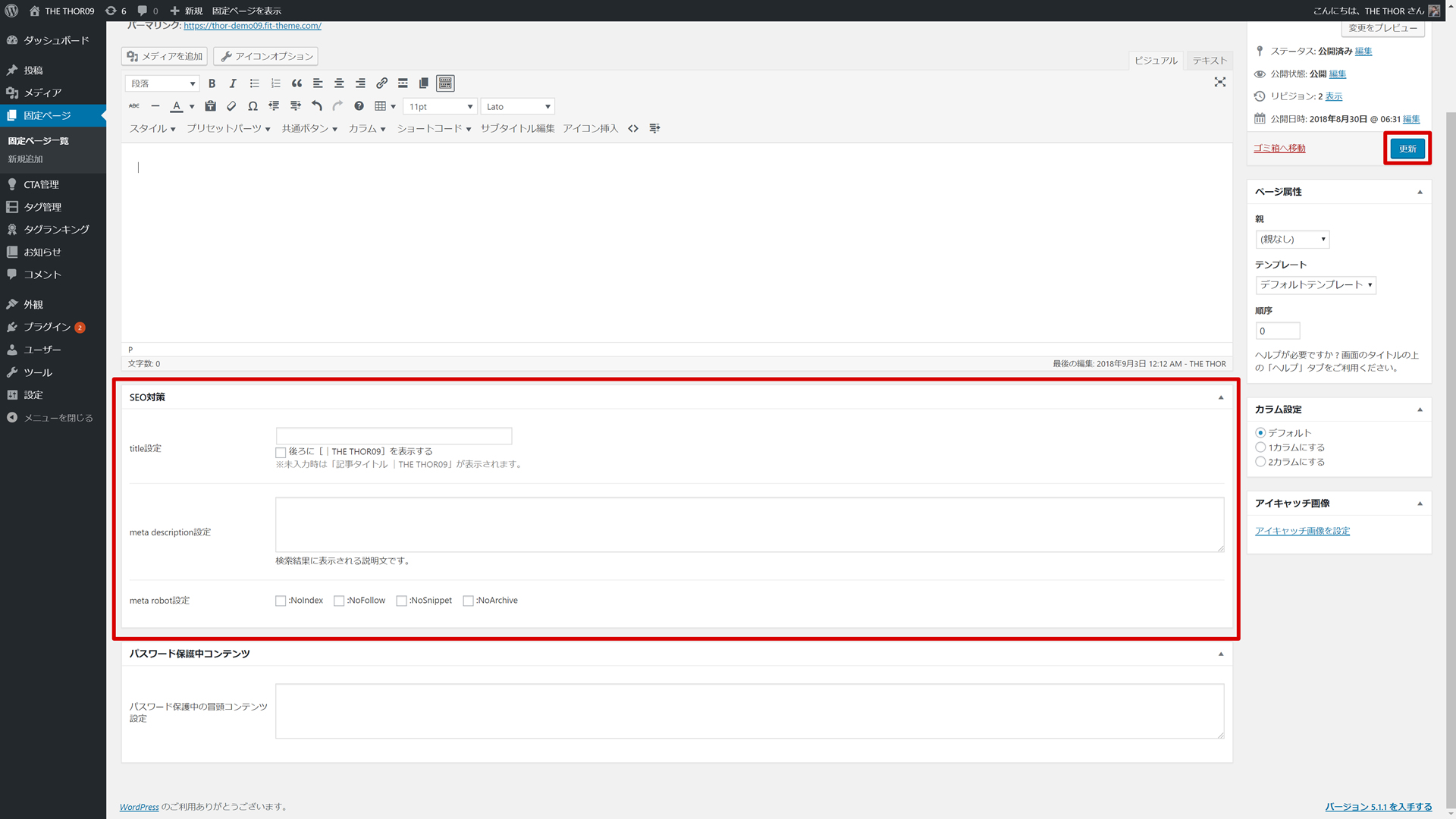 TOPページのタイトルとディスクリプションを入力し「公開/更新」を押してください。