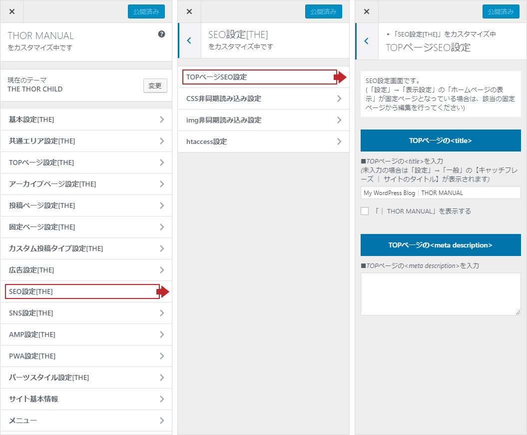 titleとmeta descriptionを入力し「公開」を押してください。