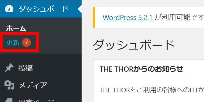 先ず、「ダッシュボード」→「更新」の順に進んでください。