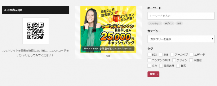 アフィリエイト広告などの広告タグをメインカラムやサイドバーなど好きな位置に設置することができます。