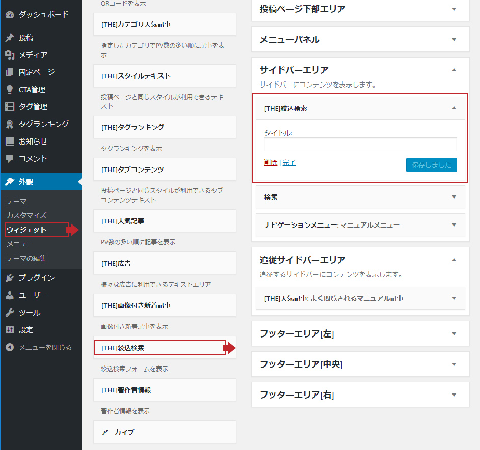 絞り込み検索をウィジェットエリアに設置する方法