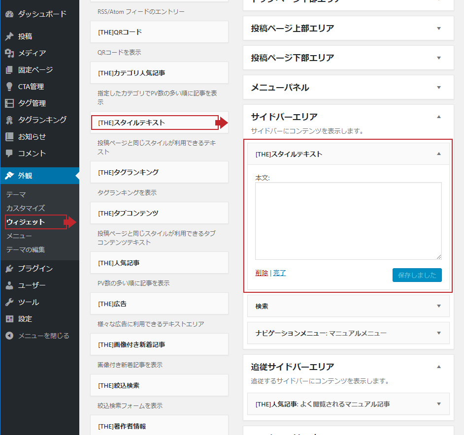 この記事では、スタイルテキストをウィジェットエリアに設置する方法をご紹介します。