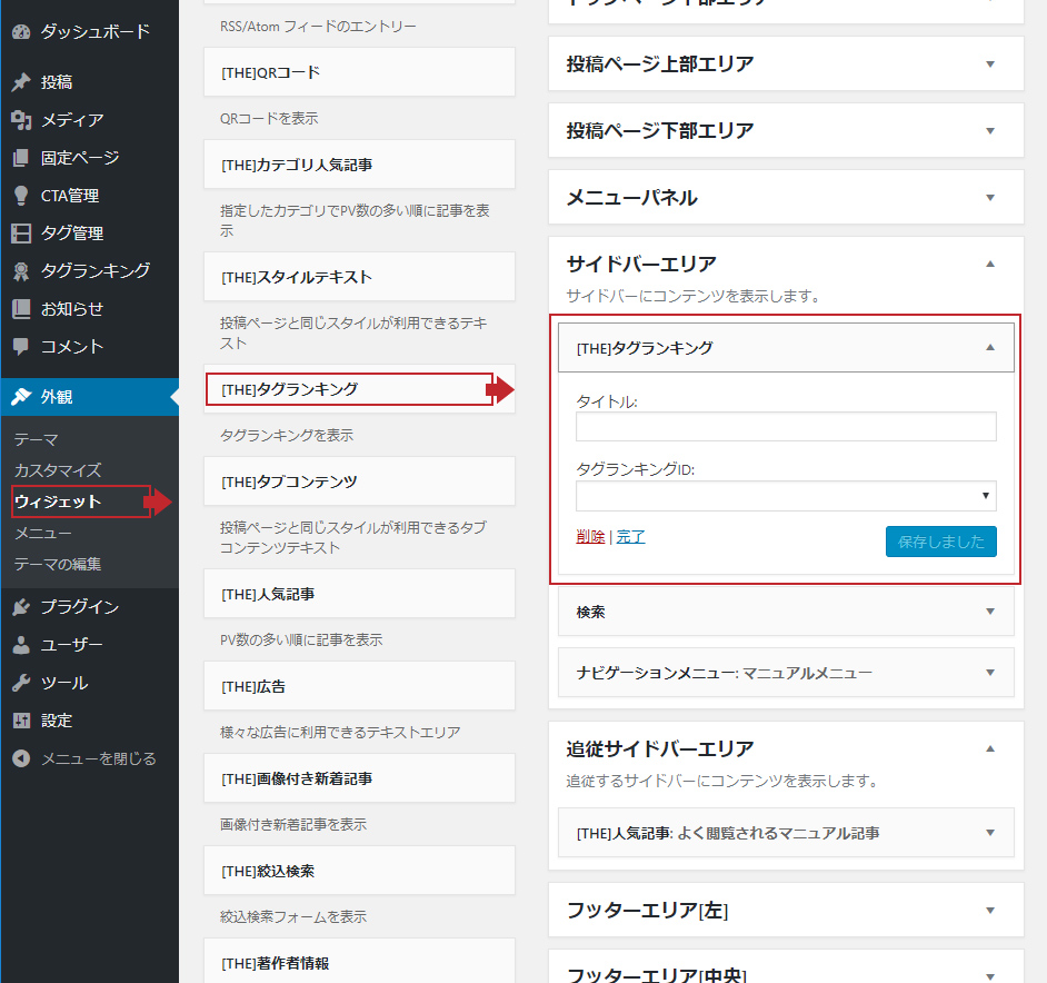 「利用できるウィジェット」の一覧から「タグランキング」を押します。
